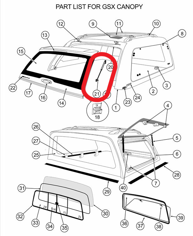 Alpha GSX Canopy Rear Lift Up Window Gas Struts & Brackets Stabilus Hardtop