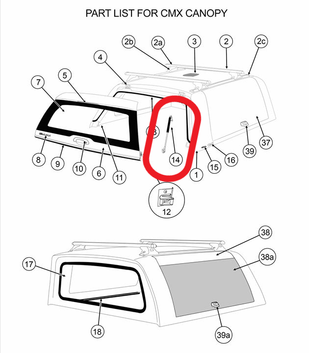 Alpha CMX Canopy Rear Lift Up Window Gas Struts & Brackets Stabilus Hardtop
