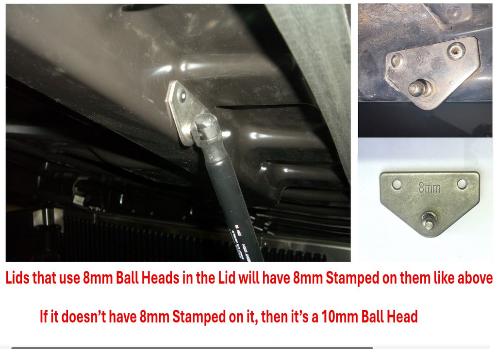 EGR UTE LIDS Came out with M10 Late Model and M8 Ball Heads Early Models on the Lid so you will need to make sure of your Strut Ball Size on the Lid