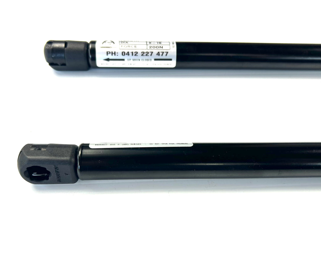These 700mm Long x 200n struts are for the Genuine VE VF Commodore EGR Plastic Ute Lid with Shiny Black Plastic Underneath with or without a rear Spoiler fitted