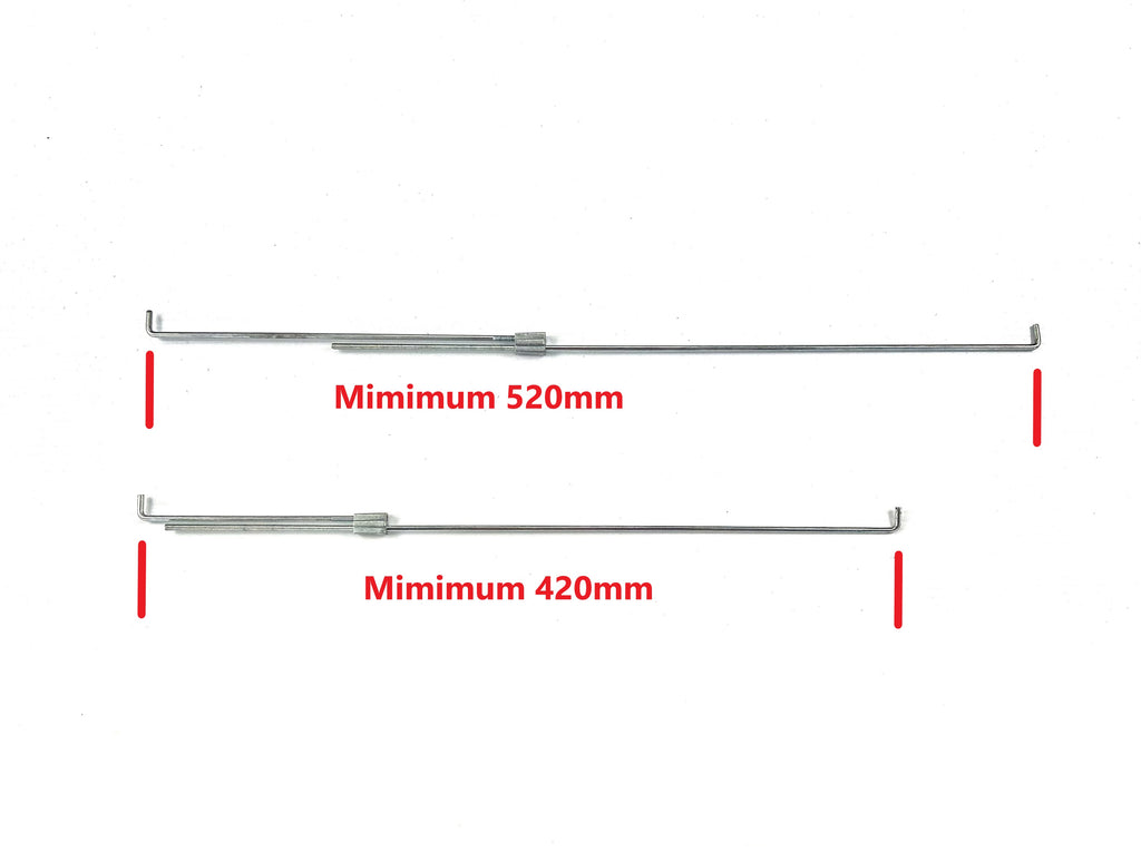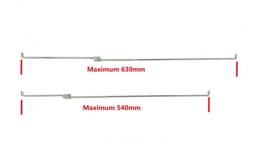 Long Side Measures Minimum 520mm and Adjust out to Maximum 630mm (using 1 x 415mm Rod & 1 x 230mm Rod)